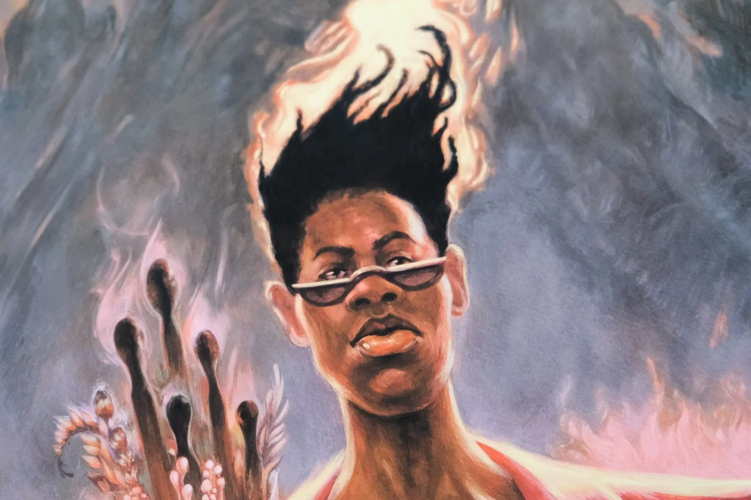 The Volcano is an avatar of Black Rage that is anchored in love and protection. They alchemize centuries of debilitating anger into a call to action that seeks transformative justice. They are the ancestral flame that scorches violent systems to make room for new life. They hold a bouquet of flame that can light the fires of change, or to release the heaviness that comes with a slow and patient eruption.